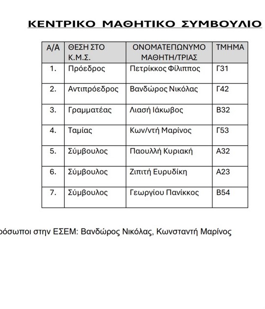 Ακολούθως, προχώρησε σε παρουσίαση του Κεντρικού Μαθητικού Συμβουλίου, ο Πρόεδρος του οποίου απευθύνθηκε στη μαθητική κοινότητα εκφωνώντας μια σύντομη ομιλία.